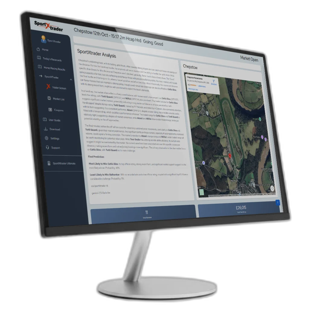 Using all the data available regarding the event loaded into the trade screen, we use state-of-the-art AI to analyse the event, look at the history of the market runners or selections and to produce up to the minute advice regarding how to approach each market.
