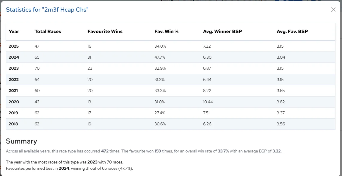 When looking at horse racing racecards, you expect a minimum of data. SportXtrader gives you more with historical race analysis